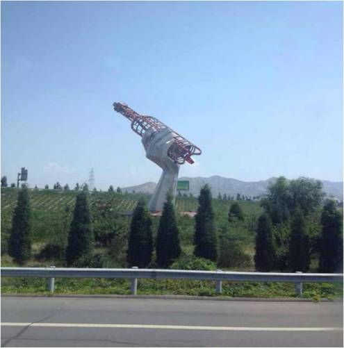 途徑董存瑞的故鄉(xiāng)懷來,那只手拖著個***就是城市的標(biāo)志