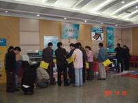 總體感覺邯鄲廣告市場比較成熟,展會前我們拜訪了邯鄲幾個有名的噴繪公司如晨光廣告、勝吉廣告公司和花之雨等。通過和他們交流,他們普遍認為噴繪價格價格比較低,但是還不至于到通過價格來拼客戶的地步,同時認為機器的選擇是很重要的。他們憑借著MIMAKI噴繪機的良好性能和自己的智慧能力一直服務于很多有名的客戶如中國移動等。這些客戶談及MIMAKI都贊不絕口。和晨光廣告公司的蔡總交談了解到,他們先前買過別人的一臺第四代的B品牌微壓電寫真機,剛開始幾個月使用還可以,后來就出現(xiàn)很多問題,后來購買了我們一臺MIMAKI,同時表示如果這個機器賣出去會再買一臺MIMAKI,因為他們覺得MIMAKI 噴繪機性能比較穩(wěn)定,機器比較專業(yè)。