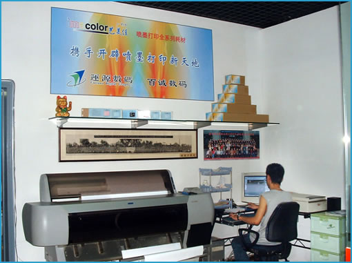 百誠數(shù)碼在藝風(fēng)國美照相器材市場內(nèi)有近50平方米的營業(yè)店面,擁有三臺打印機器EPSON7600、EPSON9600、 EPSON10600,是一家影樓、寫真館照片的專業(yè)輸出中心,在蘇皖地區(qū)的影像行業(yè)具有較高知名度。該公司的徐經(jīng)理表示,以前一直是用原裝墨水,不光是成本較高,更重要的是用原裝墨水紅色的表現(xiàn)力不充分,改用藝美佳品牌墨水和紙張能完美的打印出來。的確,運源公司想客戶所想,在影像行業(yè),公司專門配備了EYEONE一眼通分光光度儀,讓專業(yè)的技術(shù)人員現(xiàn)場幫助客戶做配套的藝美佳墨水、紙張的色彩管理ICC文件,并對顯示器色彩進行校正,實現(xiàn)所見即所得的色彩管理目標(biāo)。讓客戶無后顧之憂,有效地控制了輸出成本,保證了輸出品質(zhì),最終實現(xiàn)雙贏,達(dá)到共同發(fā)展的目的。
