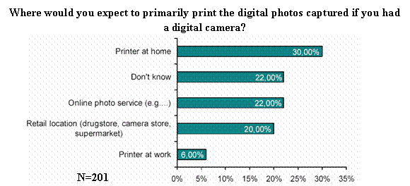 至于影像的輸出問題,兩種不同的打印方式同時占據(jù)市場并共同發(fā)展。一是用戶自己在家打印,從拍攝到輸出,全部自己搞掂。第二是通過專業(yè)連鎖店(在線或不在線)或零售打印店打印“照片”。對于輸出的影像,40%的用戶仍象傳統(tǒng)感光照片一樣將之保存在相冊中,21.1%的用戶將照片贈給親友或同事。