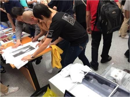 國際攝影大師楊延康老師在運源代理Epson F2080 T恤印花機打印的自己作品上簽名,并連連夸贊設(shè)備的優(yōu)秀表現(xiàn)
