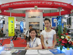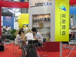 我公司展位位于2號館內(nèi), 總展出面積200多平米,主要展出了戶外高精度噴繪機——水星噴繪機、YSL雷鳥/颶風(fēng)設(shè)備,戶內(nèi)寫真機——MIMAKI系列,雕刻機系列——雕霸雕刻機、利得寶激光雕刻機,還展出了藝美佳耗材——imacolor藝美佳墨水、imacolor藝美佳相紙系列。