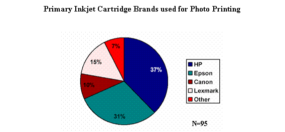 CAP Ventures對用戶行為分析的調(diào)查結果表明,發(fā)現(xiàn)西歐市場HP, EPSON,CANON, LEXMARK各品牌照片打印機墨水所占比例中HP占據(jù)首位,這與全球市場一致,EPSON,LEXMARK,CANON緊跟其次。